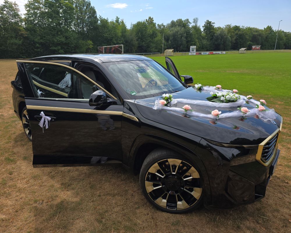 Bei einer Hochzeitsfeier können wir Sie auf Wunsch auch gerne von der Kirche oder vom Standesamt mit unserem BMW XM abholen und zu uns in den Festsaal fahren.